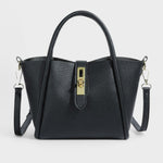 Our leather bag has a sleek, structured design with gold-tone metal accents and a detachable shoulder strap for versatile use. This stylish bag is ideal for everyday use, offering plenty of space for your essentials such as your iPhone, wallet, and makeup.