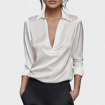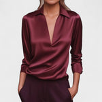 Luxurious Satin Finish: Crafted from high-quality satin, the Premium V-Neck Blouse offers a soft, elegant sheen that instantly elevates any look. Its silky texture is soft to the touch, ensuring all-day comfort.